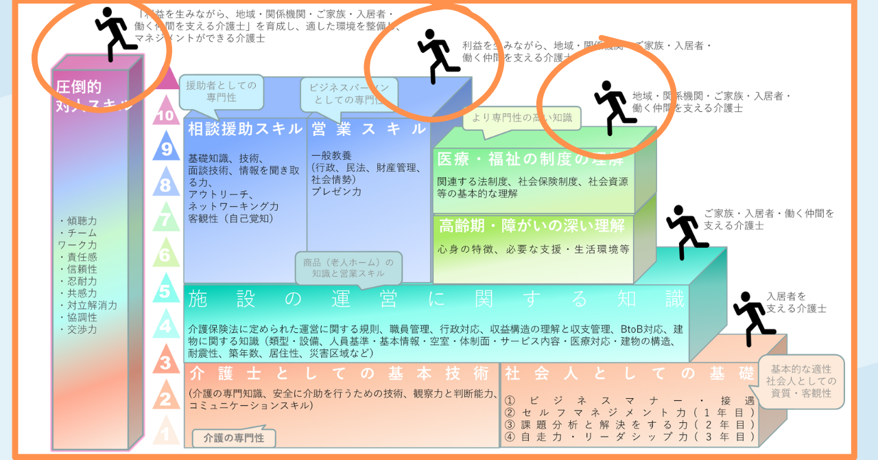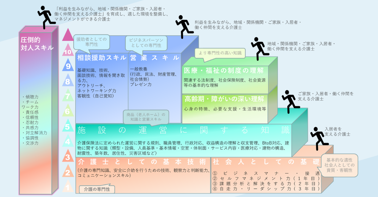 働く仲間を支える介護士を育成し、適した環境を整備し、